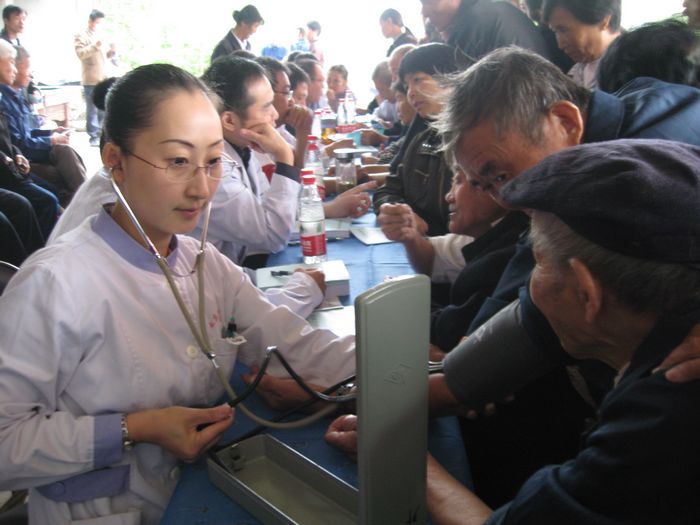 更火爆的场面是在现场临时搭起的义诊台上,前来就诊的回族乡亲团团围住9位来自城里医院的专家,活动中心的院子里挤得水泄不通,前来看病的大多是回族老人和妇女。马青山老人患癌症术后多年,身体依然比较硬朗,他说:今天不用到城里折腾就看了专家门诊,(市民革)还送了药品,今天真像过节!市民委民族科的姚科长介绍,这次市民革将专家医生组成下乡医疗队,为少数民族聚集区送卫生,捐赠药品价值约2000元,义诊300人次,同时散发了医生自己编印的《健康教育宣传手册》300多份。