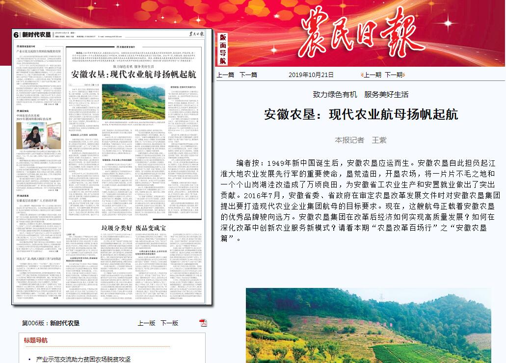 农民日报--安徽农垦:现代农业航母扬帆起航